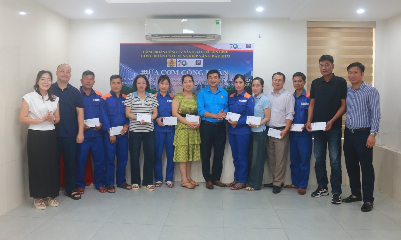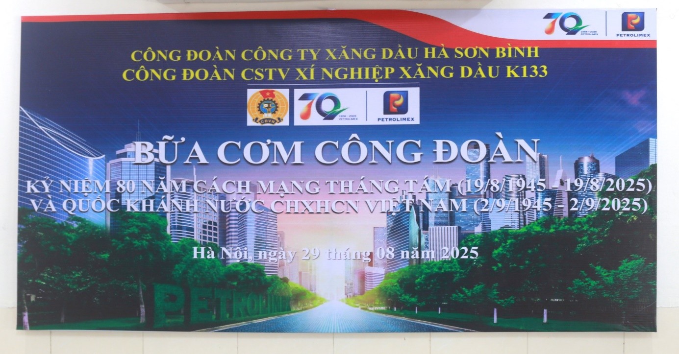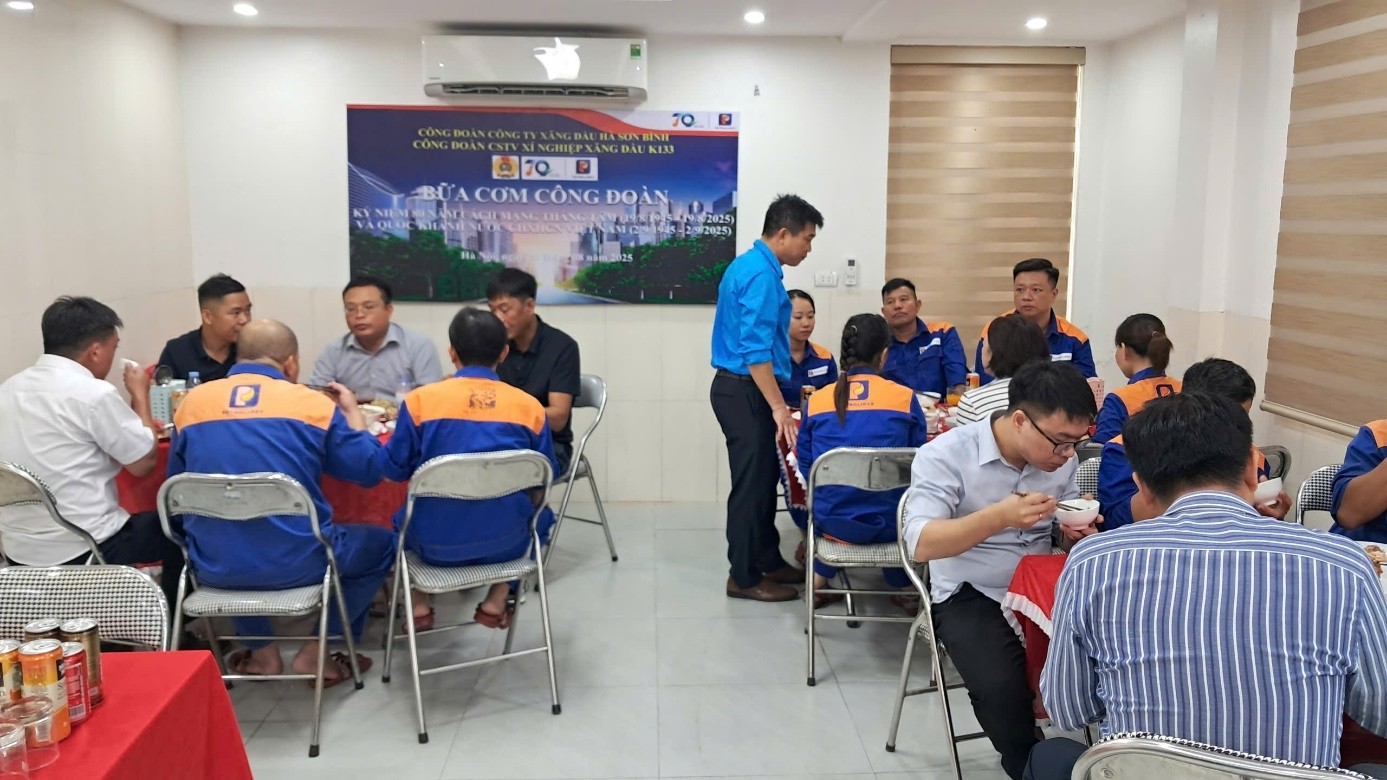 Thực hiện chủ trương của Công đoàn cấp trên và Công đoàn Công ty xăng dầu Hà Sơn Bình về việc triển khai tổ chức “Bữa cơm Công đoàn” năm 2025, được sự đồng ý, hỗ trợ của Lãnh đạo Xí nghiệp, trưa ngày 29/08/2025 Công đoàn CSTV Xí nghiệp xăng dầu K133 đã tổ chức “Bữa cơm công đoàn” cho toàn thể CBCNV – NLĐ là đoàn viên công đoàn Xí nghiệp tại nhà ăn tập thể của đơn vị.