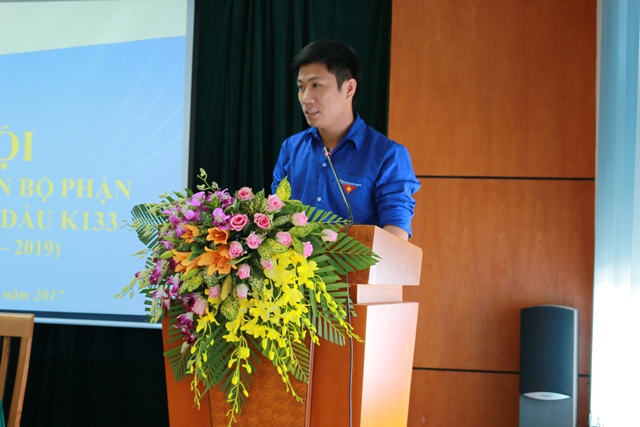 Bí thư Đoàn Thanh niên bộ phận Xí nghiệp Nguyễn Hữu Quảng thông qua báo cáo và nhiệm vụ phương hướng