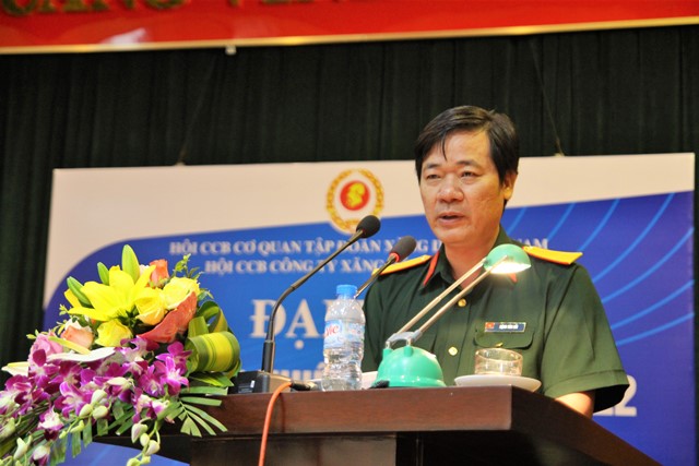 Đ/c Trần Minh Hải - Phó bí thư thường trực Đảng ủy, Chủ tịch Hội CCB Cơ quan Tập đoàn phát biểu tại đại hội