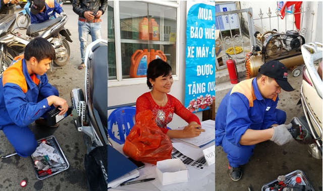 Tư vấn bảo hiểm, thay dầu xe máy cho khách hàng tại CHXD XN K133