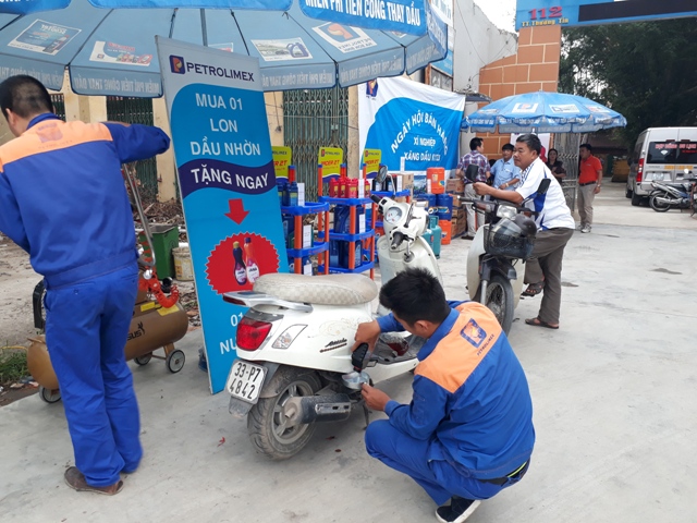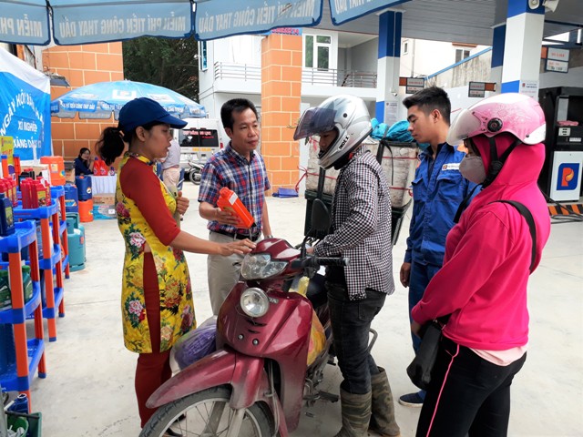 Lãnh đạo Xí nghiệp trực tiếp cùng các CBCNV giới thiệu các sản phẩm của Petrolimex tới khách hàng